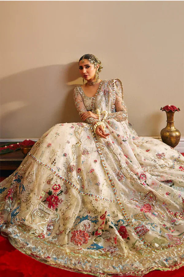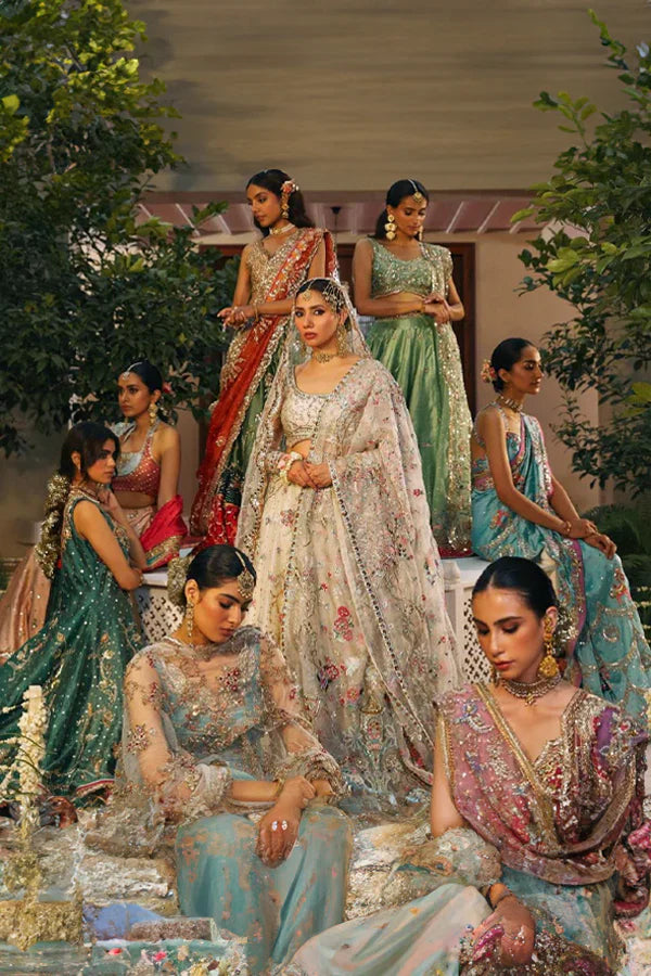 This collection is dedicated to the hands that masterfully turn threads to help us create our opulent fantasies. Silver and gold strands intertwine on fabric harkening the sun and the moon. Sunehri noor, Rupehri noor adorning the Rano woman by turns.